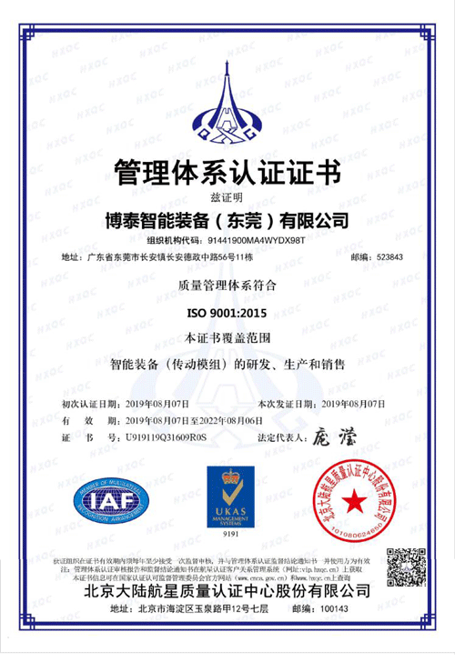 2019年8月1日,标准认证中心对我司ISO9001质量管理体系2015版的监督审核圆满结束